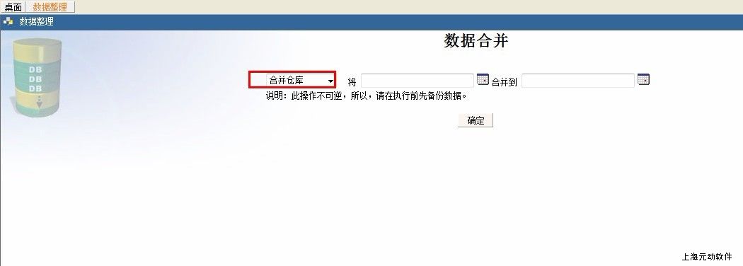 用元动系统提供的合并仓库的功能进行合并,此功能在【系统管理】-【数据管理】-【数据整理】中。