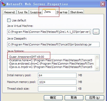 ,打开web服务器界面,然后选中JAVA 选项,在Java Options:栏位添加:-Duser.timezone=GMT+8:00。