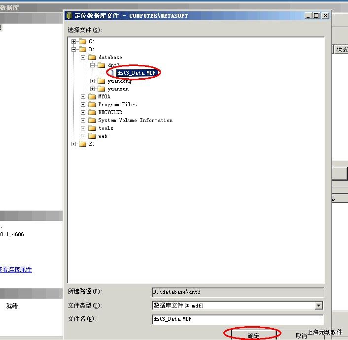 第四步:进入添加数据文件界面,选择数据库文件路径,点击确定,如图:
