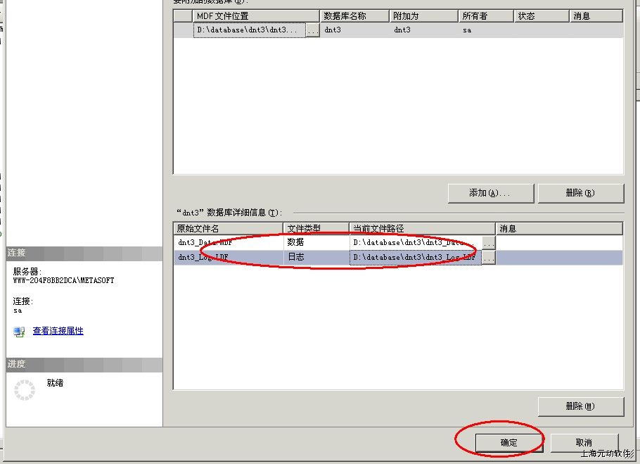 第五步:确认数据库路径,确认无误,点击确定,如图: