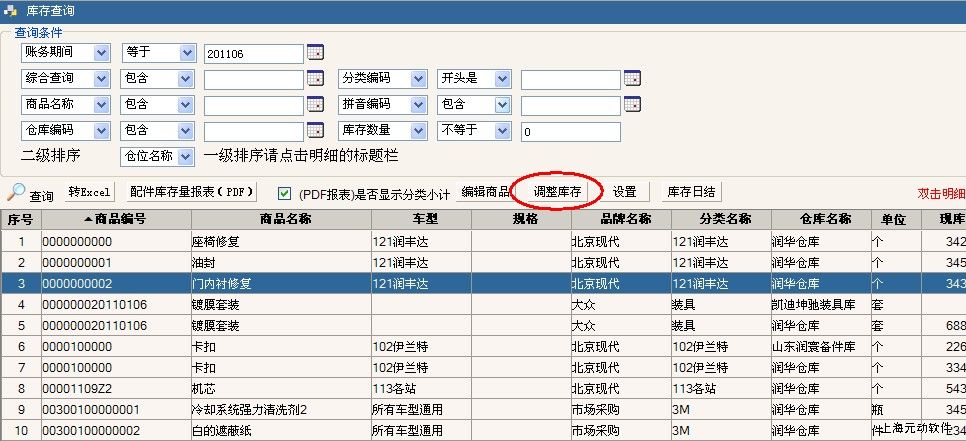 小贴士:库存调帐单计算库存的方式其实就是和采购入库单或者进货退货单一样的,都是要和现有库存进行加权平均的,所以很难一步将单位成本调整到某一个数值。比如某配件现库存量为1个,单位成本为10元,想将库存量调整到2个,单位成本为11元,应如何调整呢?第一步,调整 -1,单位成本10第二步,调整2,单位成本11元,这样就达到我们需要的结果了。“进销存-库存查询-库存查询”作业双击明细提供这种快捷调整的方式。