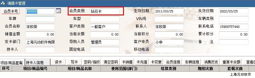 4、打开【会员管理】查询后【会员类别】则变更为升级会员类别。更换卡号的会员则会显示新卡号。