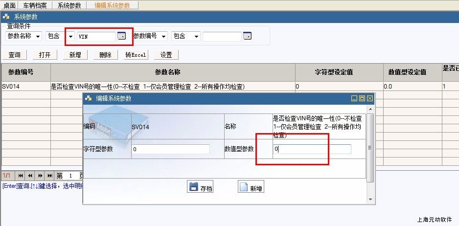 VIN号的输入有两个地方的控制,第一个是【系统参数】的控制(参数控制必须输那就必须输),打开系统参数输入VIN查询出参数SV014,