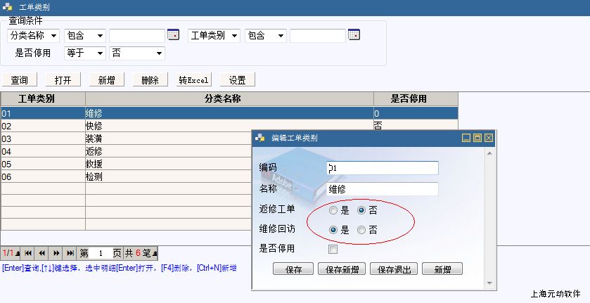 2,设置好需要回访的工单类别;如:维修;