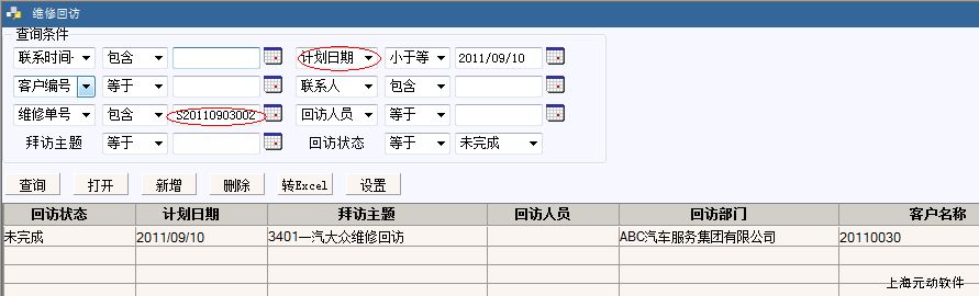 4,待结算完毕后,系统会自动产生一张维修回访单;接下来即可做回访了!