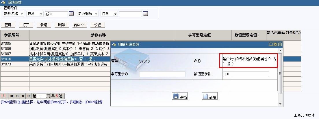 在销货退货时是否需要进行退货成本核定在参数中控制,