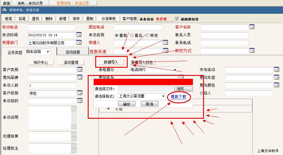 【新】来电来店记录增加导入功能(仅限上海大众)