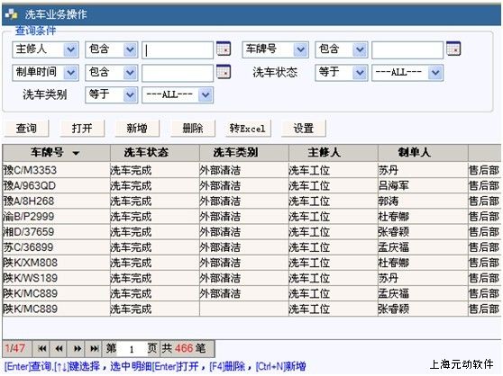 凡是有洗车要求的,在完工审核后,自动会生成一张洗车业务单,可在维修管理-洗车业务操作中查询到。如下图: