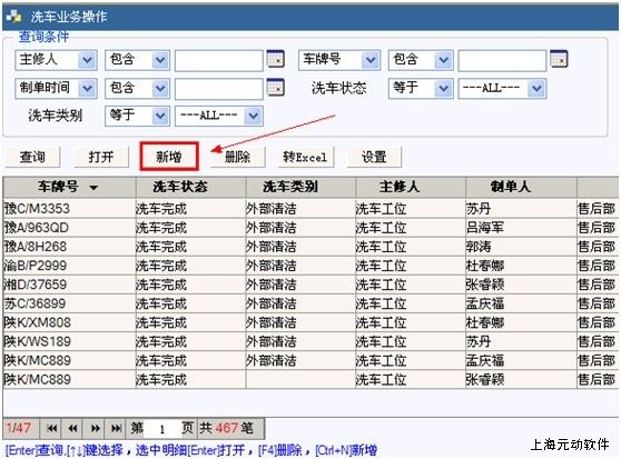 3.客户车辆直接进店洗车或是内部车辆需要洗车,可由服务顾问进入维修管理-洗车业务操作菜单,直接新增洗车单据,如图: