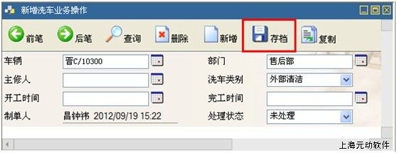 洗车业务单生成后,可在洗车业务操作菜单中查找到对应洗车单据。