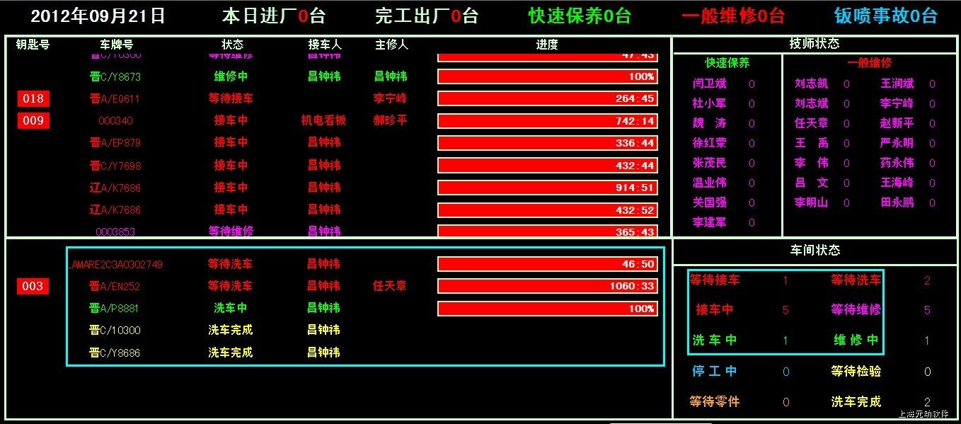 5.洗车的状态,可时时更新至客户看板(.../tpws/cust)、车间看板(.../tpws/jd)中体现。如图: