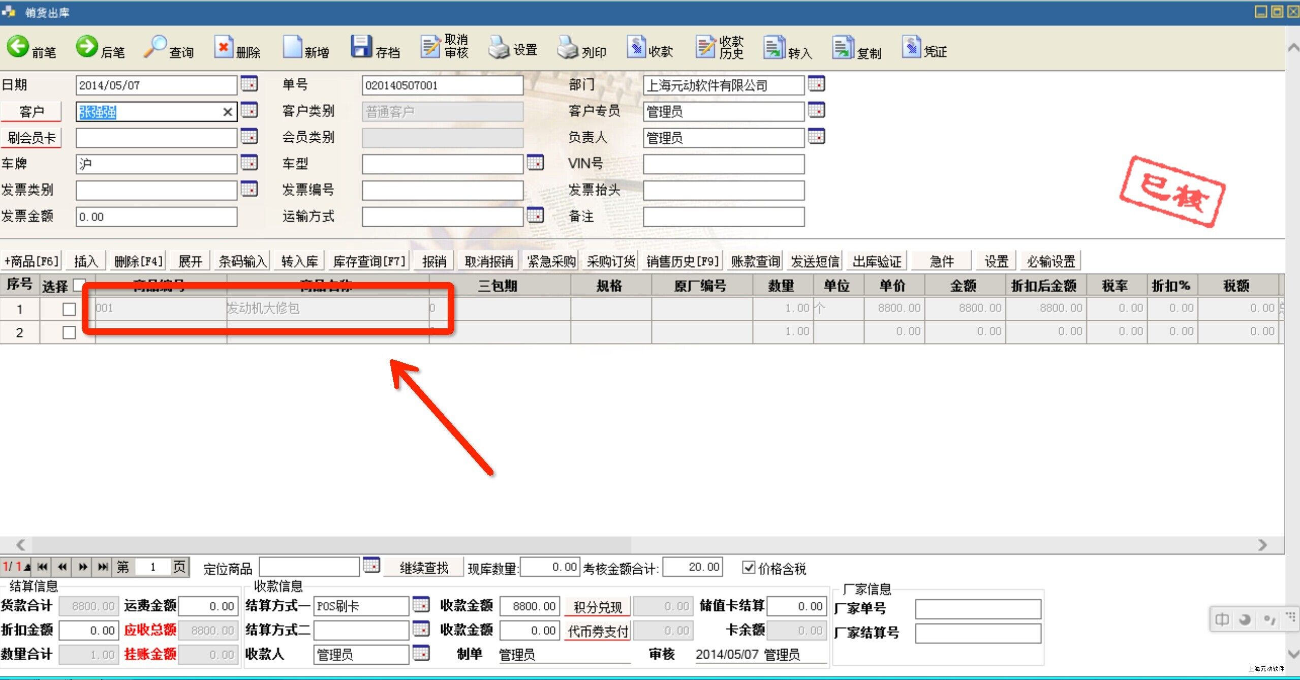 ③开单销货,如下图