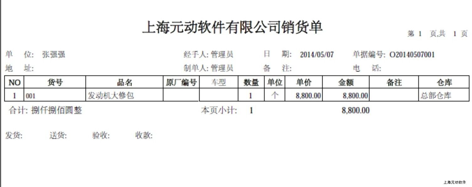 销货单预览: