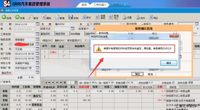4、有索赔项目但是没有进行索赔鉴定的工单系统会给出提示(如下图)。