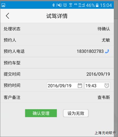 待确认:可查询微信预约试驾产生的试驾申请记录,并进行确认处理;