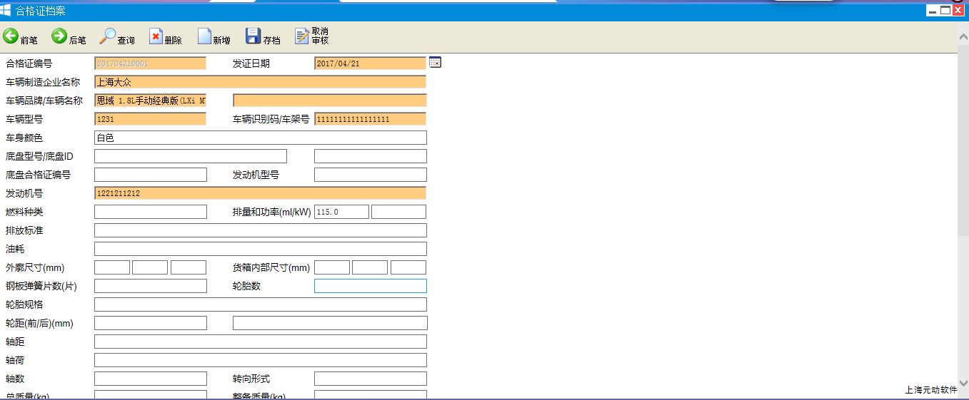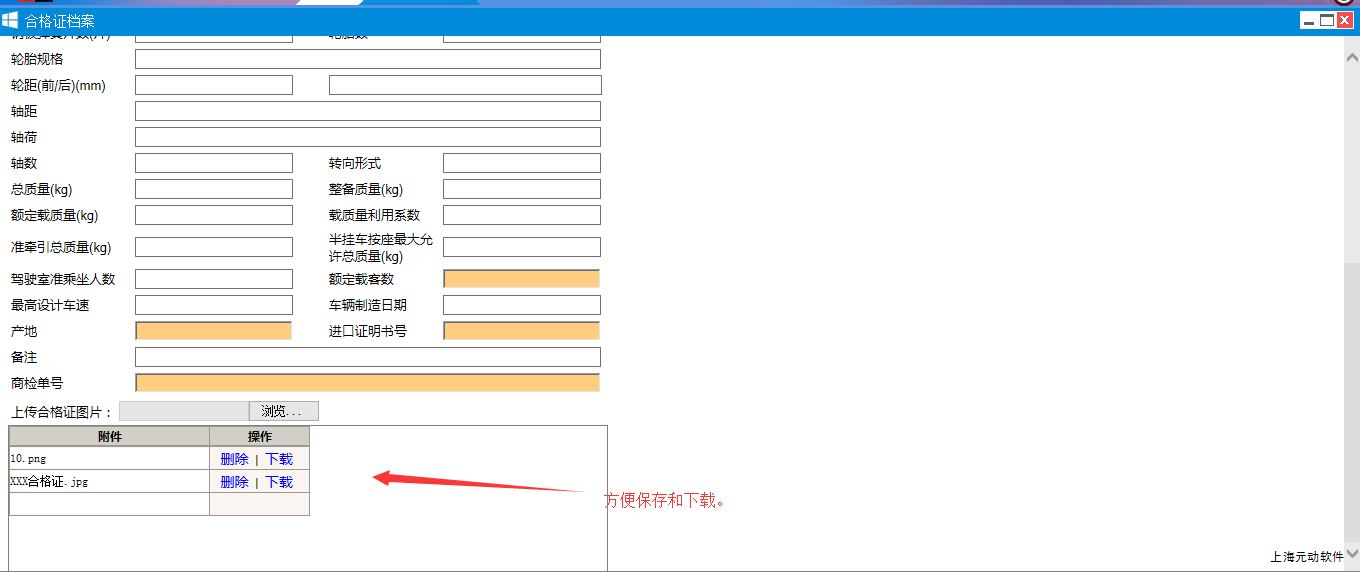 (1) 针对一些客户的需求,需要保存合格证档案 ,元动新增加了合格证档案 ,见下图: