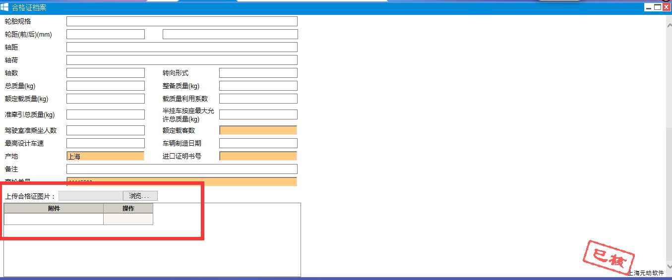 2、也可以通过附件上传,把合格证上传保存到合格证档案里面,方便保存和下载。