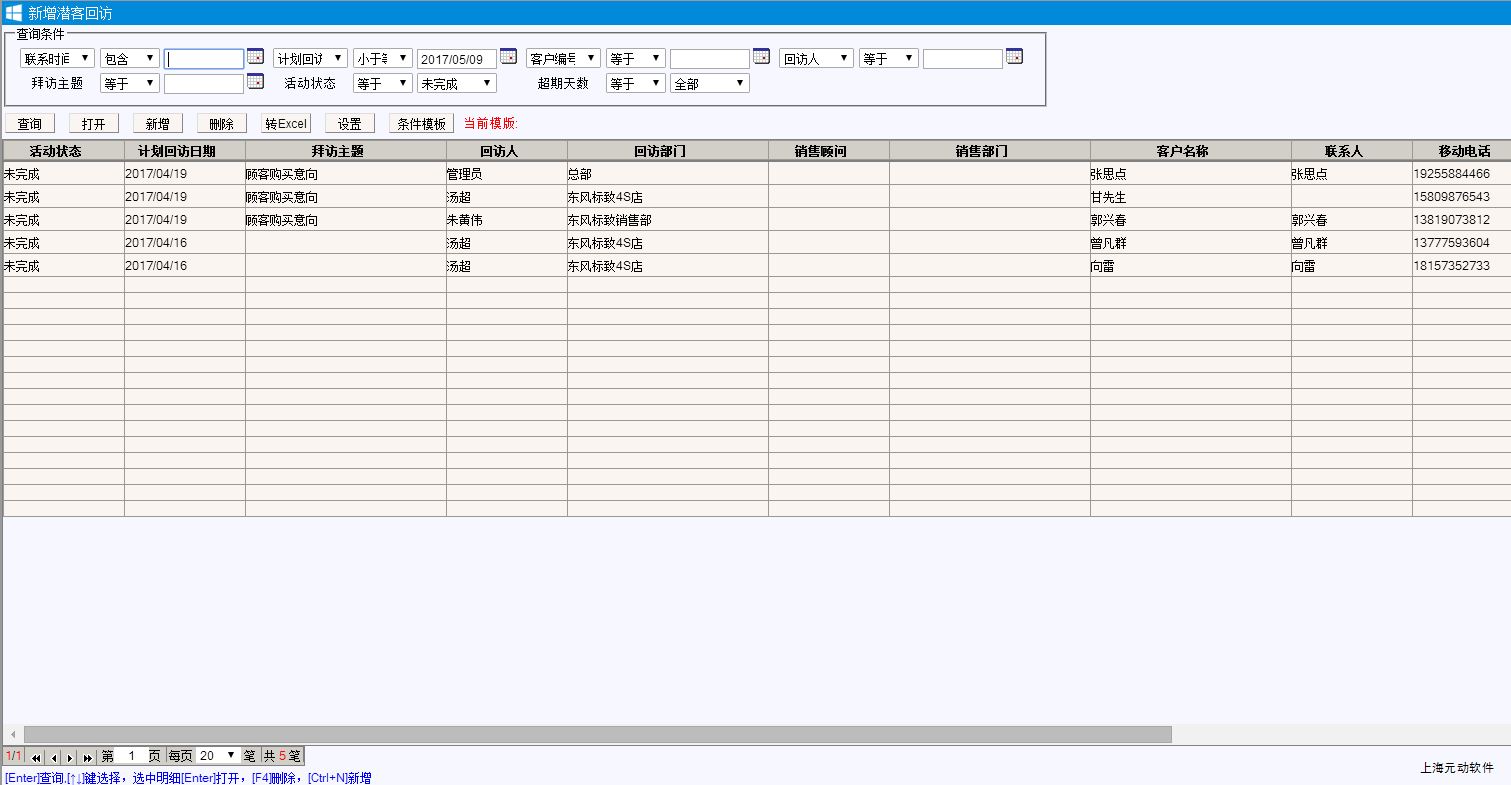 二、在潜在客户档案中新增潜客或者来电到店中分派审核后自动新增的潜在客户档案都会同时产生一笔新增潜客回访记录。