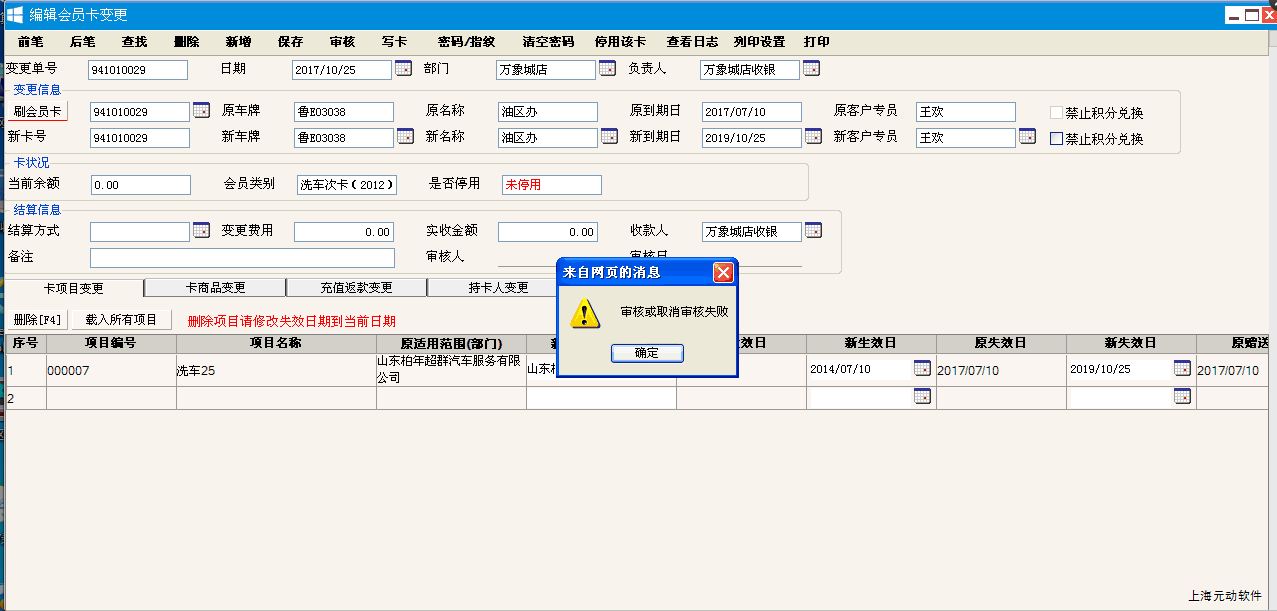 一、会员卡变审核的时候出现审核或审核取消失败,如下图: