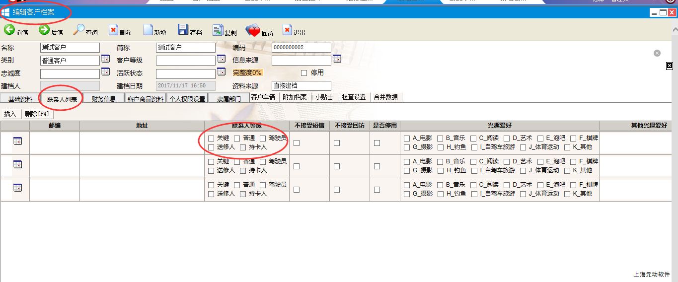 2、联系人列表中没有勾关键人、送修人或持卡人