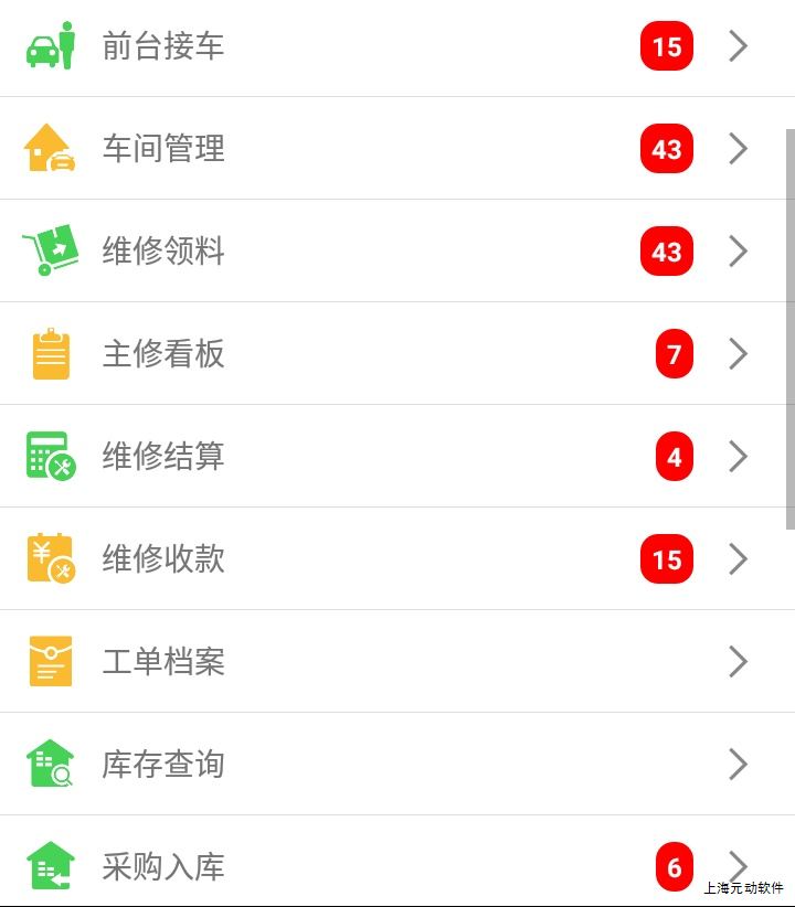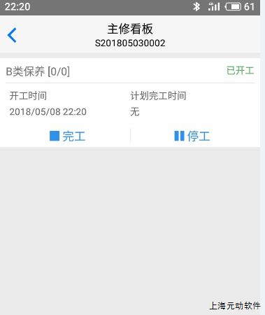当工单进行派工审核后通知期主修人:有新的维修任务,点击进入到明细界面进行开工/停工/完工