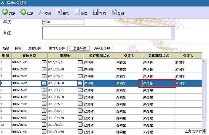 前言:在帐务期间中操作总账结转时,发现点【总账处理】按钮后没有任何反应,不能正常结转。