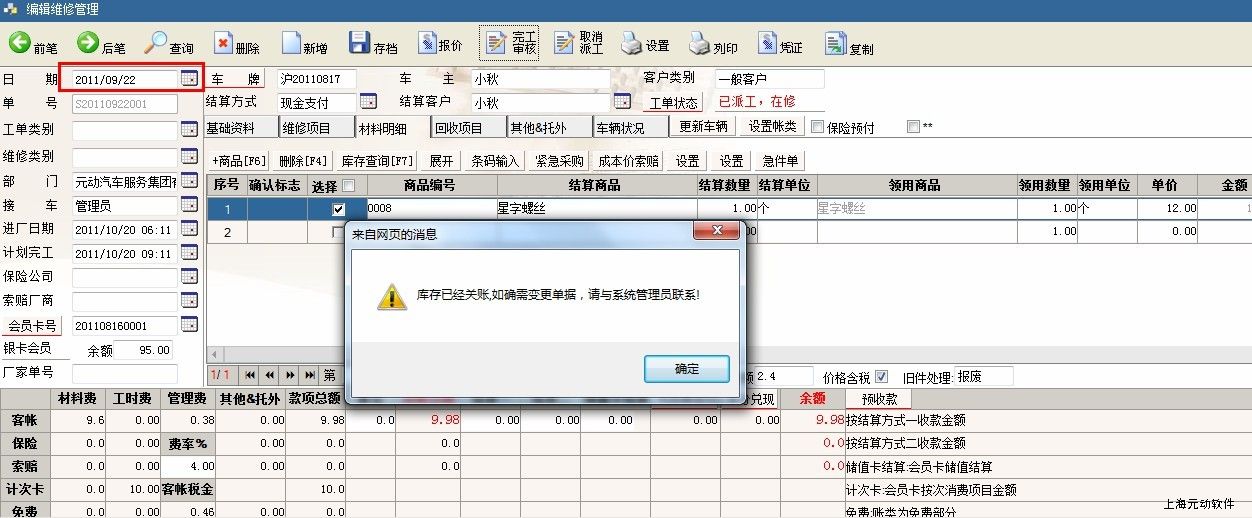 前言:现在10月份,要操作9月份的单据完工审核时提示库存已关账不能审核,9月份在帐务期间里已关帐,10月份是开帐的。主要原因是因为该维修流程是没有要求操作维修领料单,而是直接完工审核后扣除库存,所以在跨月份完工审核时要生成的领料单没有指定领料日期系统会默认9月份。(走领料单流程不会出现这种情况)