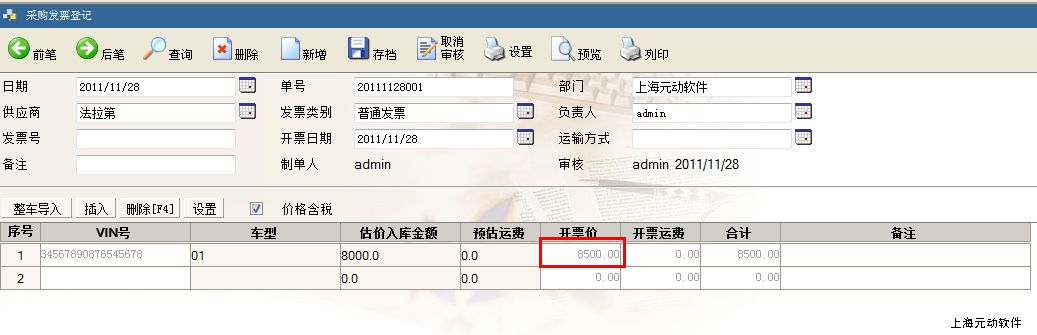 该如何处理呢?我们可以操作“采购发票登记”,以核定采购成本;(如下图2)