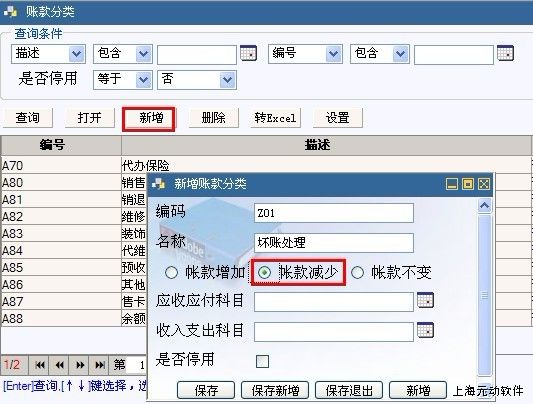 一、新增账款分类:坏账处理。进入帐款管理-帐款字典-帐款分类。如下图: