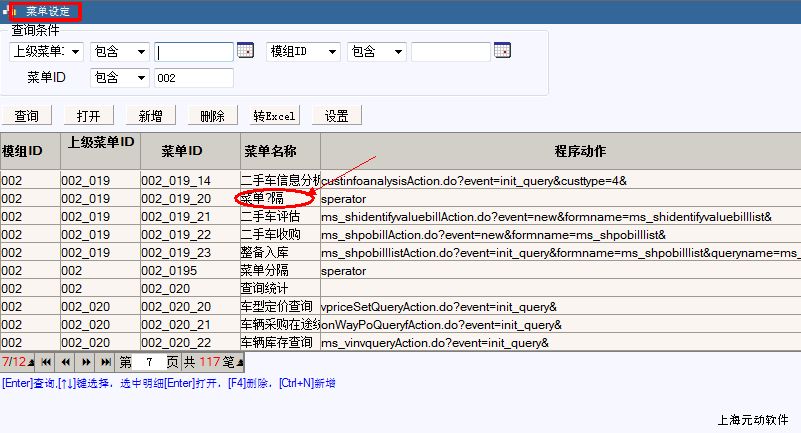 原因分析:造成此种现象原因一般是菜单名称中含不规则字符造成;如下图: