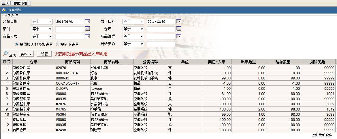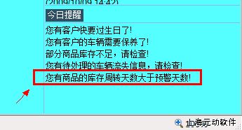 3、点击上面的提醒或从“日常提醒--库存周转天数提醒”进入,如下图
