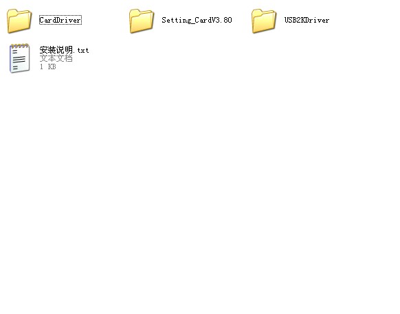 2.解压到文件夹,安装压缩包里面的3个文件,安装顺序为:1.CardDriver 2.Setting_CardV3.80,(全部默认安装,不需要更改设置),如果是USB接口,则需要安装USB2KDriver(安装默认设置)驱动,安装完成后重新启动电脑!