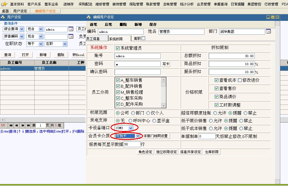 6.进入S4系统管理->用户设定,打开需要使用可视卡打印的员工,如图所示: