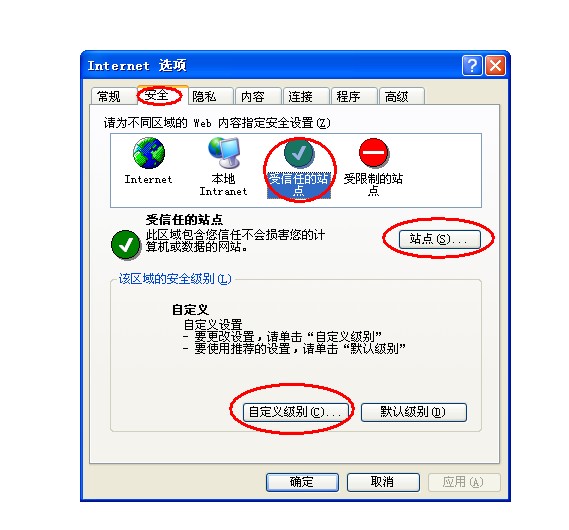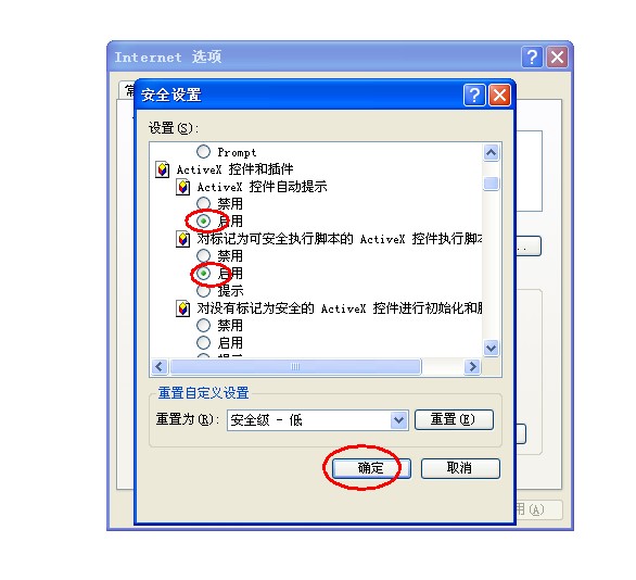 点击自定义级别,把所有Activex插件为启用状态,最后关闭所有IE浏览器,重新登陆软件,如图: