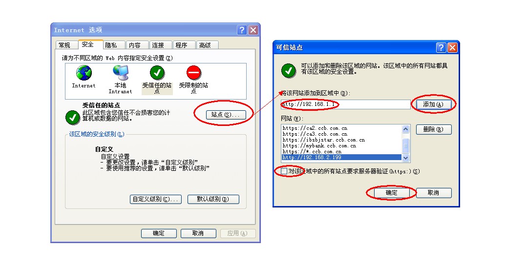 点击站点,在弹出对话框添加信任站点,确定,如图所示:
