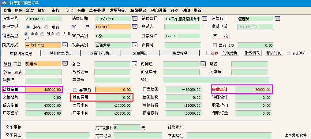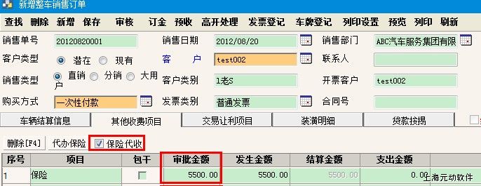 为满足各4S店不同需求,元动S4新版整车销售订单新增保险、装潢代收功能,软件中操作如下: