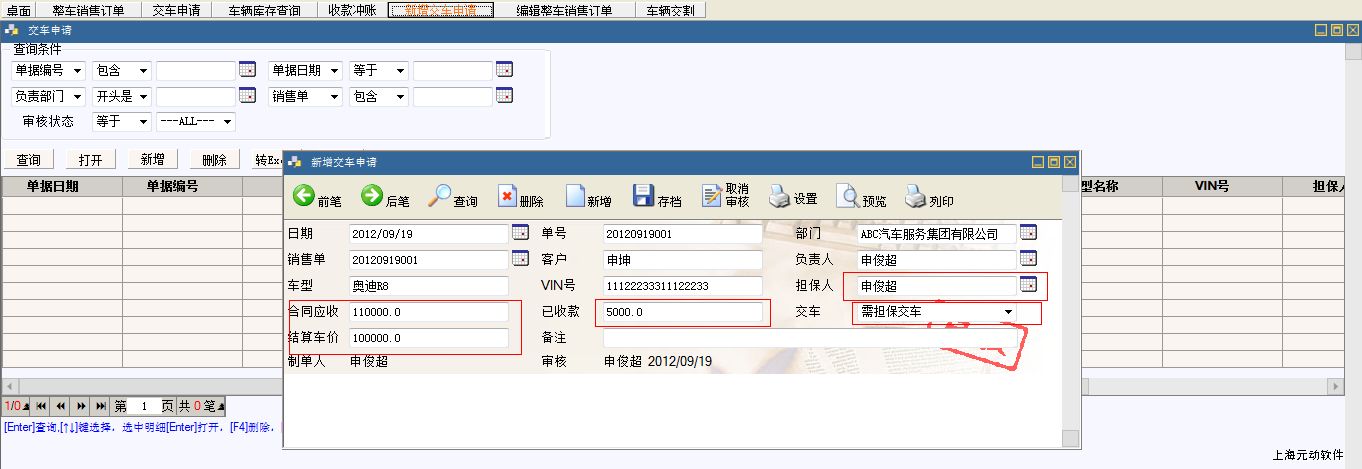 进入菜单整车业务----交车申请,点击新增按钮,如图。 1.png(104.14 K)2012/9/20 17:49:01