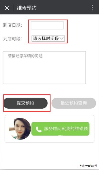 一、客户关注修理厂或4S店微信公众号以后,绑定车辆信息,使用公众号 维修预约 功能提交预约