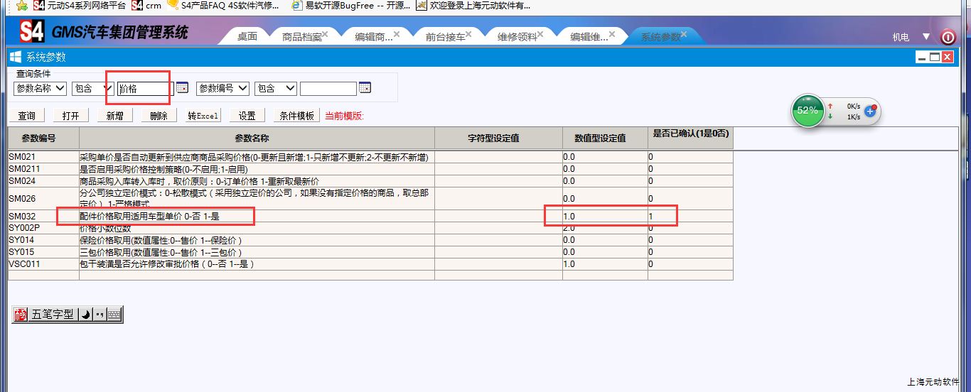 二、在参数中查找单价,启用配件价格取用适用车型单价,如下图: