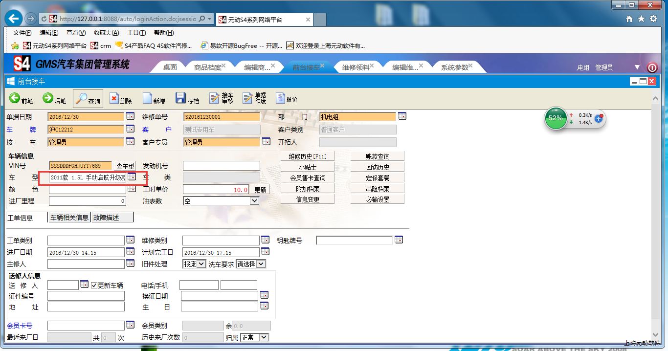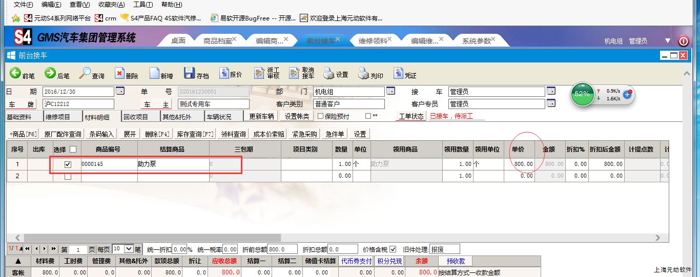 三、前台接车选对应的车型,选取材料。(看材料的价格)
