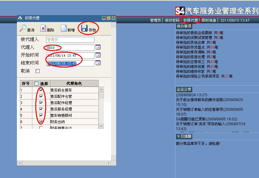 在S4系统中,如果一个员工要操作多个部门,那么只能通过设置多个帐号来实现,但是这样员工在操作的时候需要重新登录,非常不方便,这时,我们可以考虑使用权限代理功能:
