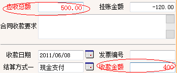 此按钮是针对之前收款的实际情况而设置的,如,应收款项500,而本次收款金额为400;