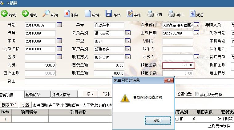 卡销售操作,输入储值金额提示“限制修改储值金额”!