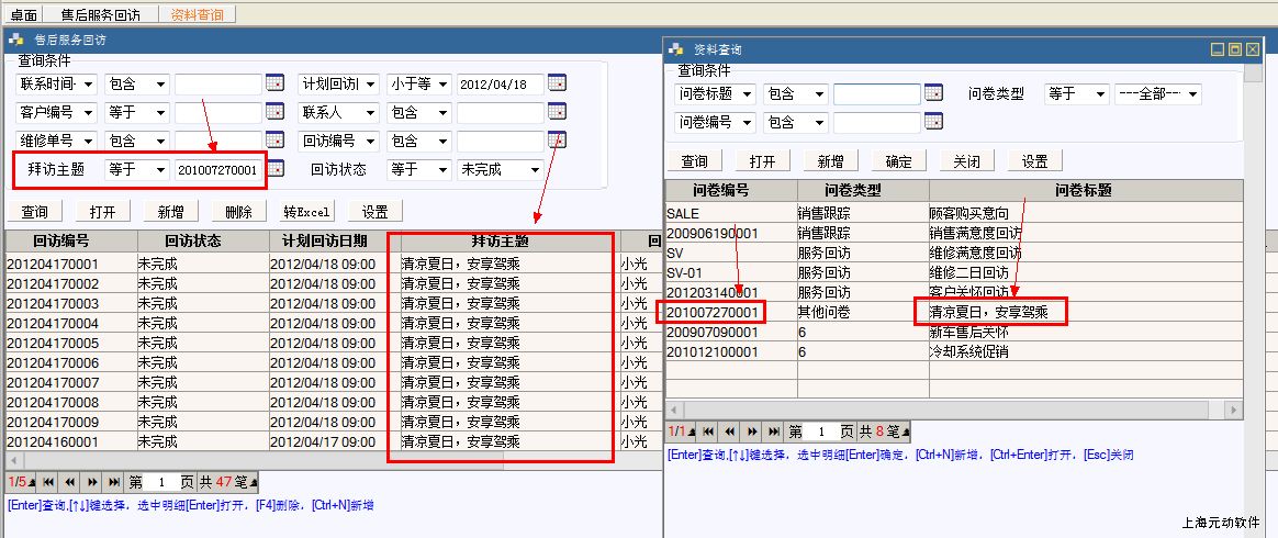 1)回访主题:在“客户关系--字典设定--问卷模版”中设定;