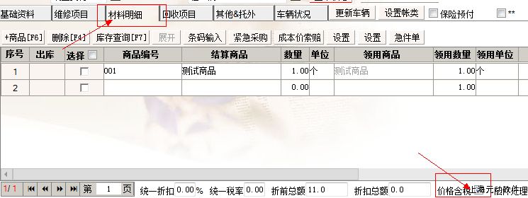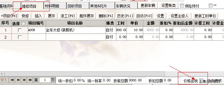 则在维修项目界面底部价格含税勾选框默认设置为未勾选