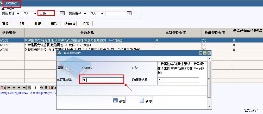 1,登陆软件,进入总控界面,找到系统管理—系统参数—输入车牌属性(参数名称输入框中)—点击‘查询’