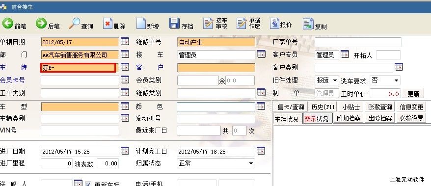 我司的客户遍布全国各地,所以经常碰到很多沪外的客户都需要修改默认的车牌属性(如:接车的时),已方便做到省时节力;