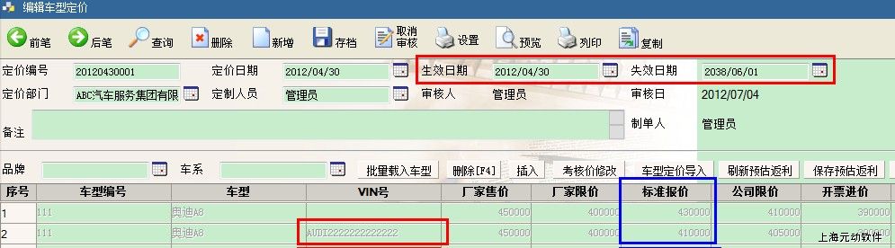 一, 车型定价中输入特价车辆的VIN后,定价就绑定该辆车了