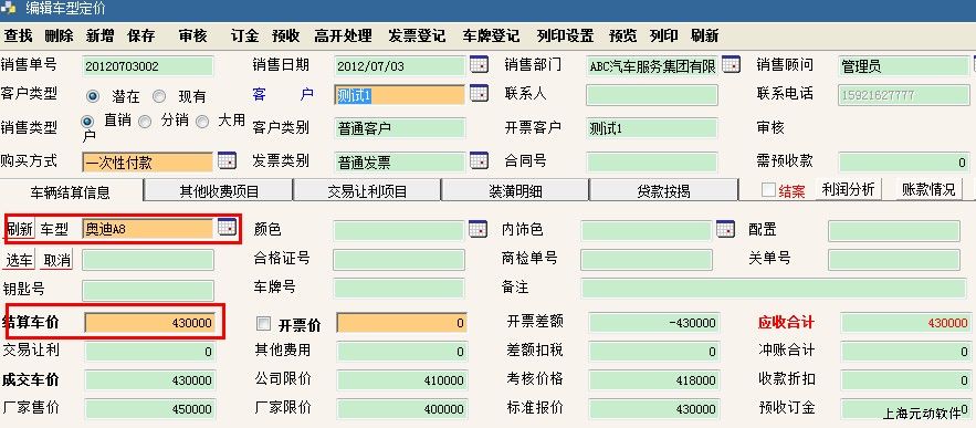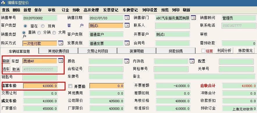 这样,促销的超期库龄的车价格就体现在整车销售订单中了。