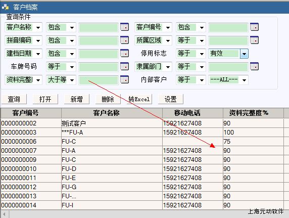 2)分店的信息完整度统计报告(统计分析-客户关系分析-资料完整度报告/明细)